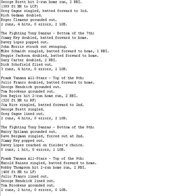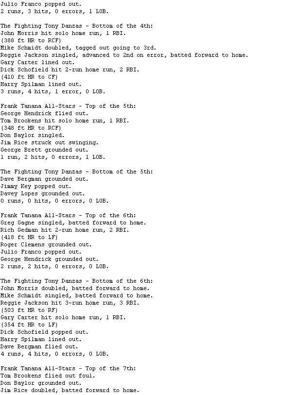 The Frank Tanana All-Stars @ Fighting Tony Danzas game is complete. Game video is attached, box score and recap later.
