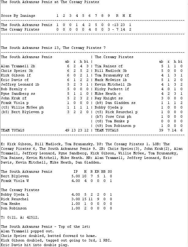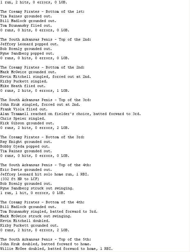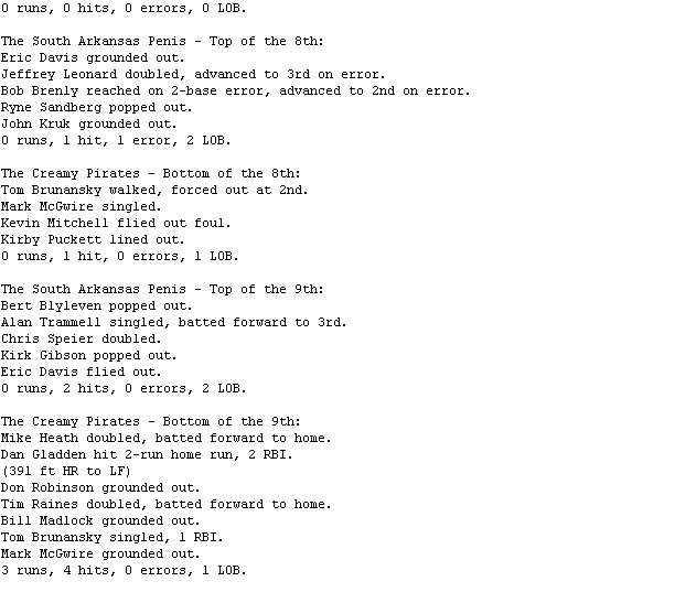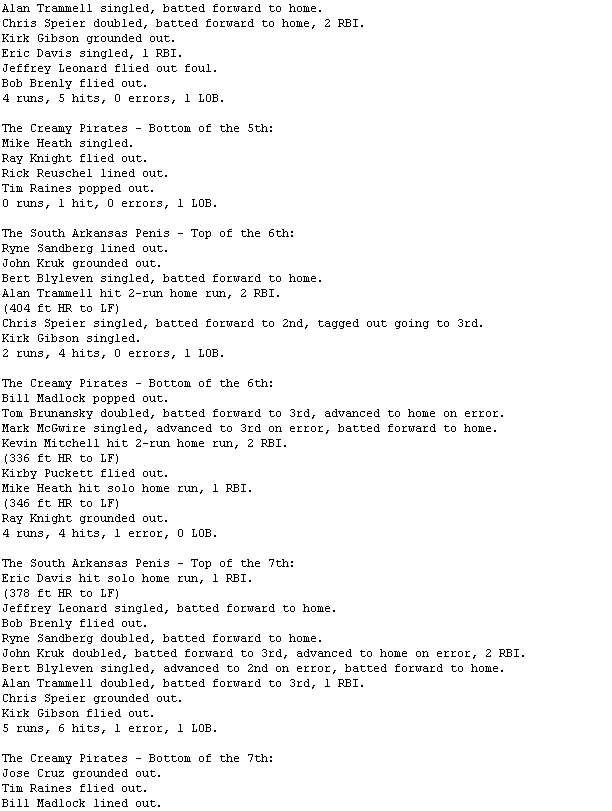 The South Arkansas Penis @ The Creamy Pirates game is complete. Game video attached, box score and recap to follow.