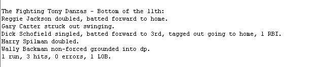 The Fighting Tony Danzas tied the game at 10-10 in the eighth inning on a two-run homer by Reggie Jackson.