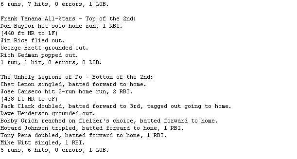 Jose Canseco homered and drove in four as The Unholy Legions of Doom pummelled The Frank Tanana All-Stars 11-1 in a two-inning slaughter to end the Fantasy RBI regular season.