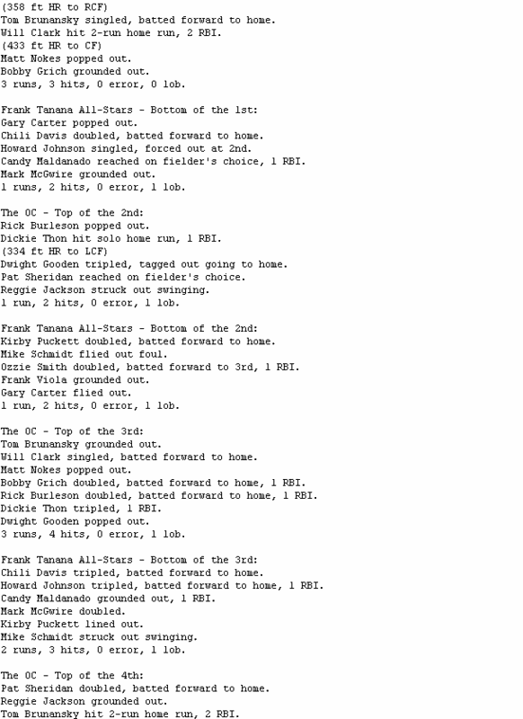 Gary Carter saves his only hit for the game for a walk off. Sloppy game defensively. It did go by quick. Howard Johnson in the 3 hole shooty? Fuckin Canadians think they know ball.